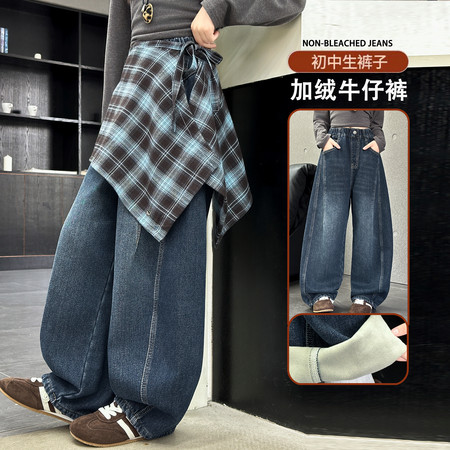 1*1收藏“格子屁帘加绒牛仔裤”